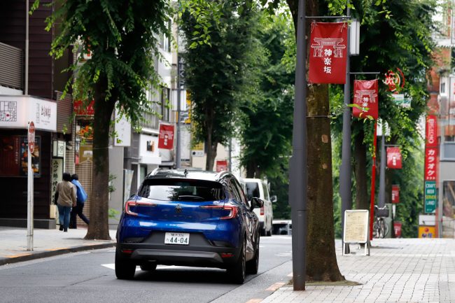 試乗を始めたのはまだ朝7時台。フランス大使館を後にし、混む前の都心を抜けて新宿区の神楽坂へ向かいました。そう、神楽坂は「東京のリトル・パリ」と呼ばれているのです。