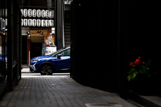 それにもかかわらず交通量は決して少なくありません。エリアに踏み入った瞬間、「大丈夫かな」と一瞬不安になりましたが、キャプチャーのボディサイズ(全長4240✕全幅1795✕全幅1590mm)であれば、狭い路地でも扱いにくさを感じることはありませんでした。
