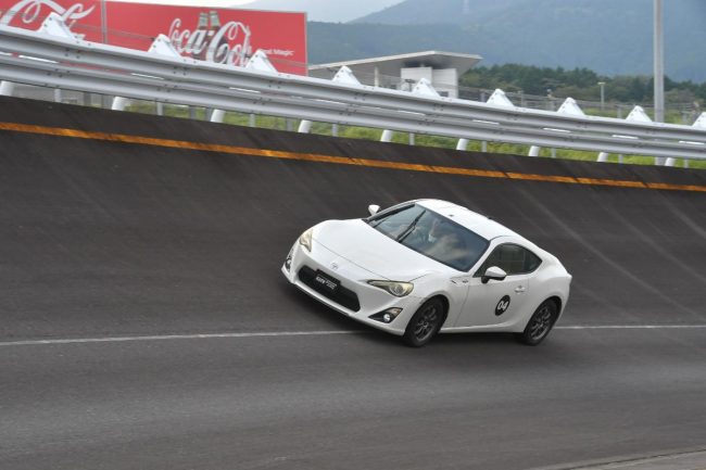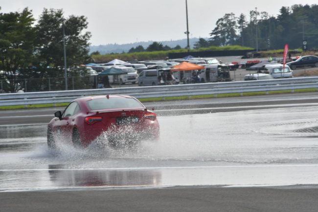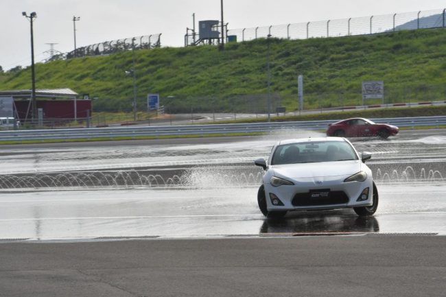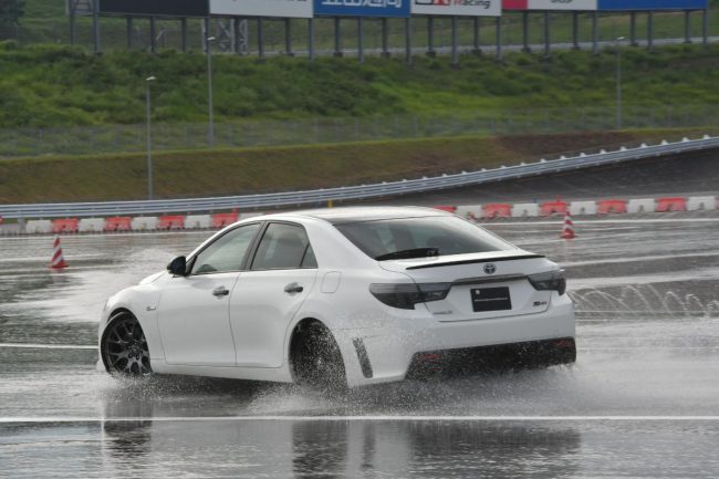 取材した日には「トヨタ 86」と「マークX GRMN」で濡れた路面を運転。アクセルを踏みすぎるとすぐにリアが滑り出してスピンしてしまうという状況を体感。