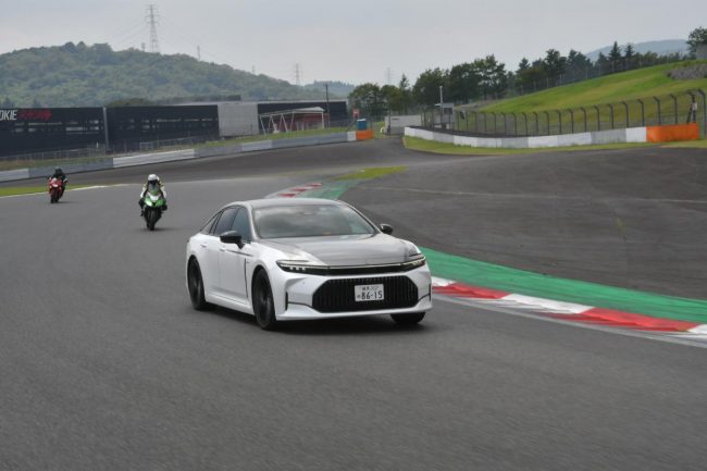 取材した日は、トヨタの「クラウン(セダン)」で「レーシングコース体験走行」に参加。他の参加者はスポーツカーからミニバン、セダン、ステーションワゴン、さらにはバイクまで様々な人が楽しんでいました。
