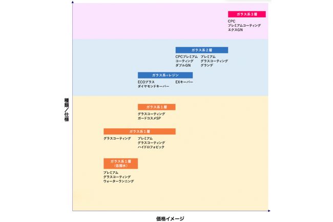 続けて、ボディーコーティングの選び方について泉さんは「少々高くても『ツヤ』『撥水性』『水はけ』『防汚性』の4項目すべてにおいて満足でき、最上級のコーティングを施工したいという人にはガラス3層(例:CPCプレミアムコーティング エクスGN)を、普段のお手入れにあまり手間暇をかけたくない人は、より防汚性能や耐久性に優れた2層以上のコーティングを、普段から小まめに手洗いなどでの洗車をする人は、初期投資は抑えて1層のコーティングを、定期的にプロのメンテナンスを望む人にはリフレッシュ施工が可能なガラス1層+レジン(例:EXキーパー)を、といったように、ご自身のスタイルに合ったものを選ぶのがポイントです」と教えてくれました。