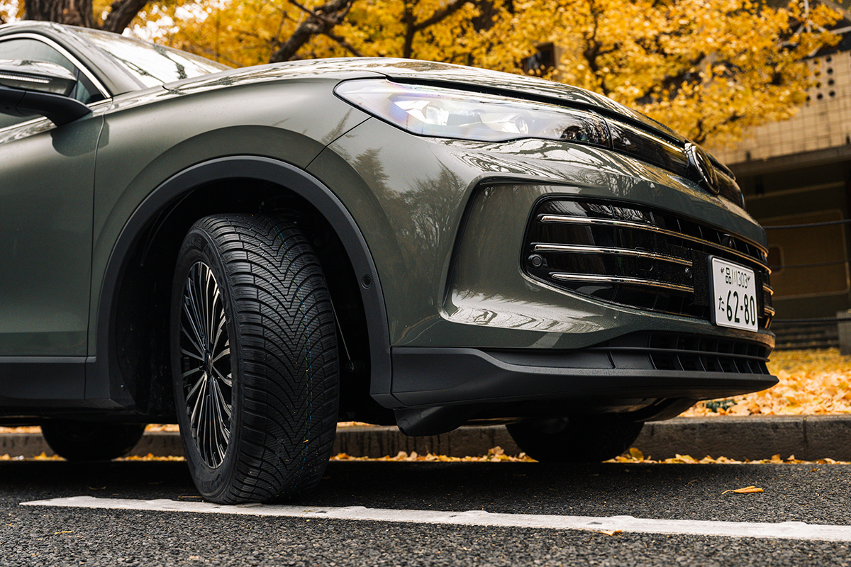 今回、クムホのオールシーズンタイヤ「ソルウス 4S HA32」を装着してテストを行う車両は、フォルクスワーゲンのミドルクラスSUVである「ティグアン」です。ティグアンは同社のラインナップのなかでもグローバルで売れている車種のひとつで、日本国内でも高い人気を誇ります。