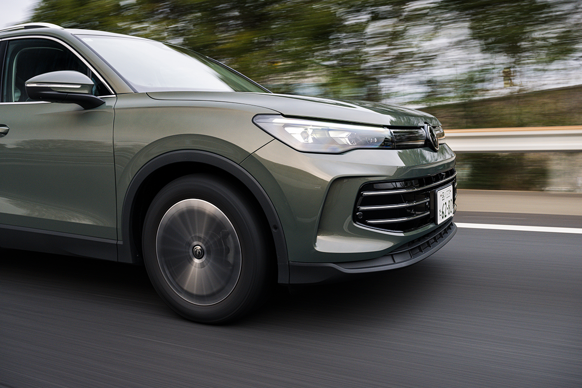 それに加えて、しっかりとした剛性感があり、ステアリング操作に対してもあいまいな感覚や応答遅れがなく、正確に反応します。高速道路での直進安定性も高く、ティグアンのように重心の高いSUVでもふらつきが少なくなっています。