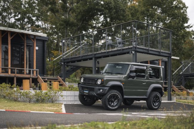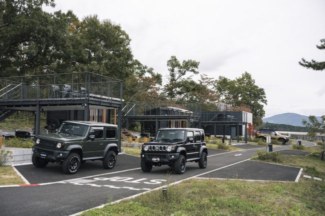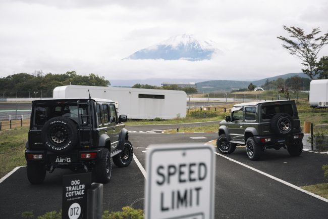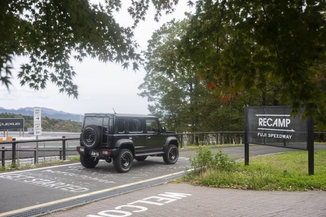 富士山麓の山あいをストレスなく駆け巡り、「RECAMP 富士スピードウェイ」の敷地に溶け込む4×4エンジニアリングサービスのジムニーは、最高にカッコいいアウトドアギアでした。