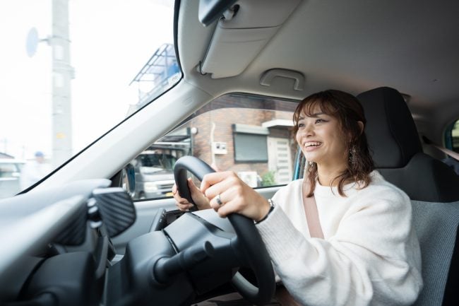 「スタートからの加速感がガソリン車とはぜんぜん違います!」というのが、「N-ONE e:」で走り出した瞬間の安枝さんの感想です。