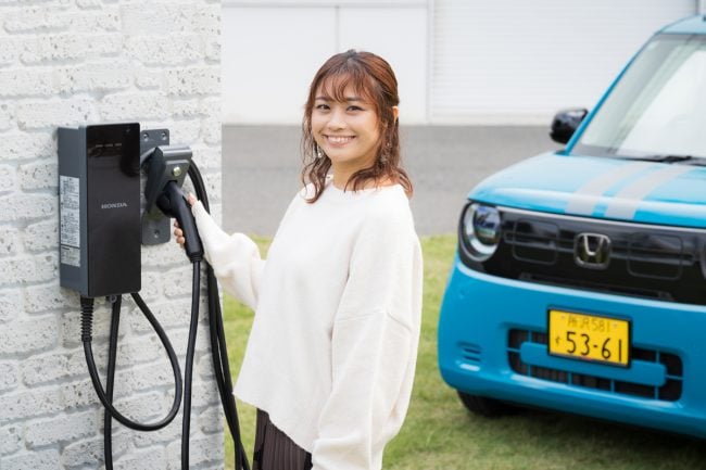 まず自宅での「N-ONE e:」の充電には、「コンセント型」や「充電ケーブル付き」といった充電設備が必要です。ホンダアクセスでは、Honda純正アクセサリーとして、充電ケーブル付きの「普通充電器(Honda EV Charger)」をラインナップしています。