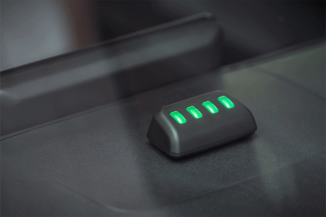 このインジケーターは充電状況を緑色の4つのランプで直感的に表示するもので、「すべて点灯すれば満充電」というように、スマートフォンのバッテリー表示の感覚で、残量を一目で把握できます。