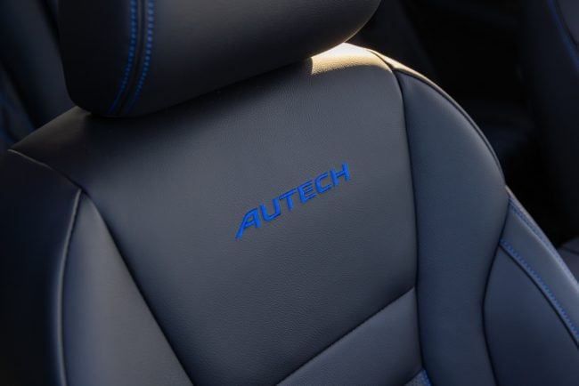 ドアを開けると、「AUTECH」の刺しゅうが入ったブラックレザーシートが目に飛び込んできます。