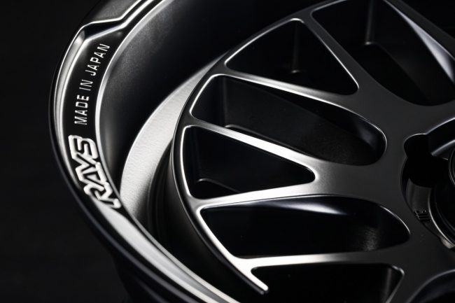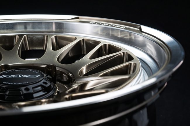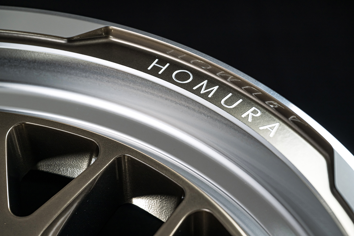 特にHOMURAシリーズの真骨頂となる“魅せるリム”は、RALC(レイズ・アラウンド・リップ・コンセプト)に基づいた設計です。RAYSの特許技術であり、繊細なデザインを3次元の曲面上に再現する切削技術「A.M.T.(アドバンスド・マシニング・テクノロジー)」によって、リムに“HOMURA”のマシニングレターを刻印することで、唯一無二の個性を生み出しています。