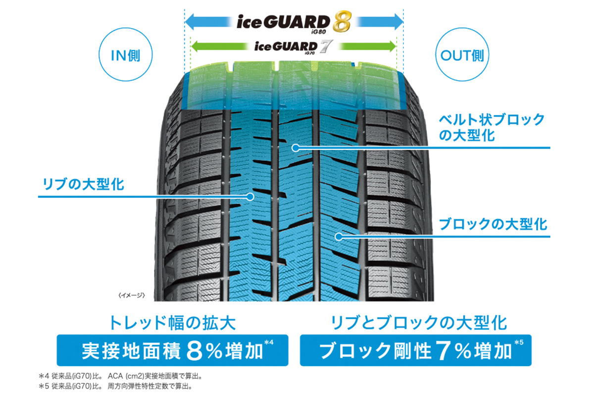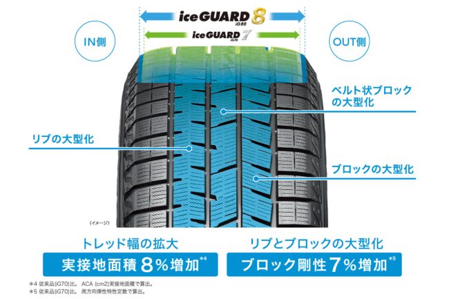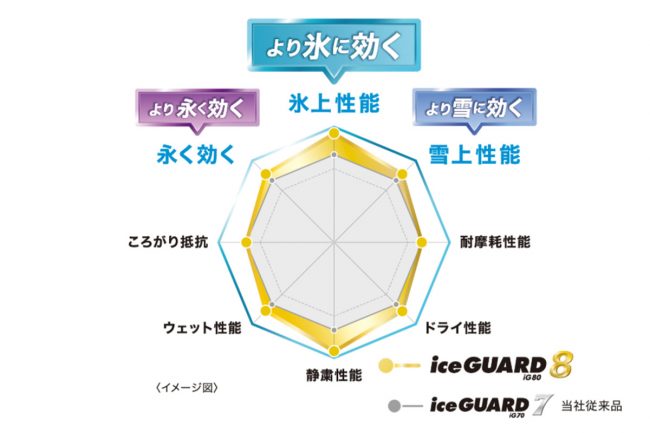 横浜ゴムが作成した資料によると、アイスガードエイトは冬用タイヤのために開発された新技術コンセプト「冬テック」を採用したことに特徴があるようです。