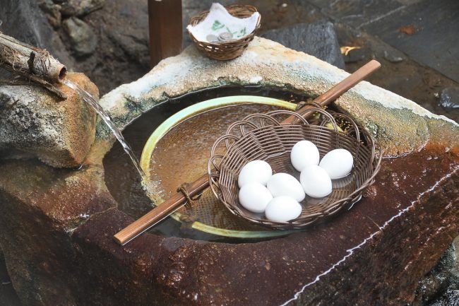 続いていただいた温泉たまごは、箱根の大涌谷で食べられる真っ黒なたまごと違い真っ白で、黄身はとろーりとした半熟。しかも、ほどよい塩味がついていて、とても食べやすいように思えました。