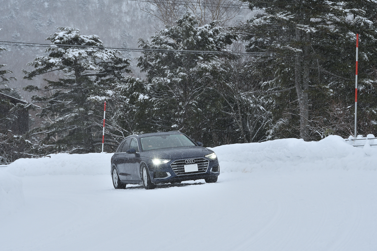 感覚的には5〜8%ほどの勾配でしたが、トラクションも十分にかかっているので力強く前進していきます。そして、デコボコとしたシャーベット雪でも直進性が乱されることなく、安心してステアリングを握っていられたのもうれしいポイント。