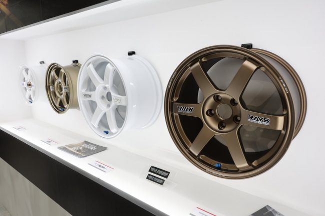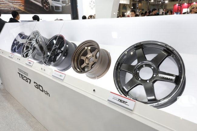 記念モデルは、最新の工法と解析技術を投入した「TE37 SAGA S-plus」「TE37 SONIC」「TE37 ultra LARGE P.C.D.」をベースとしつつも、初代をオマージュした「ブロンズアルマイト」と「ホワイト」の2色が用意され、スポークには初代TE37に与えられたロゴデザインを復刻させた、特別なモデルです。