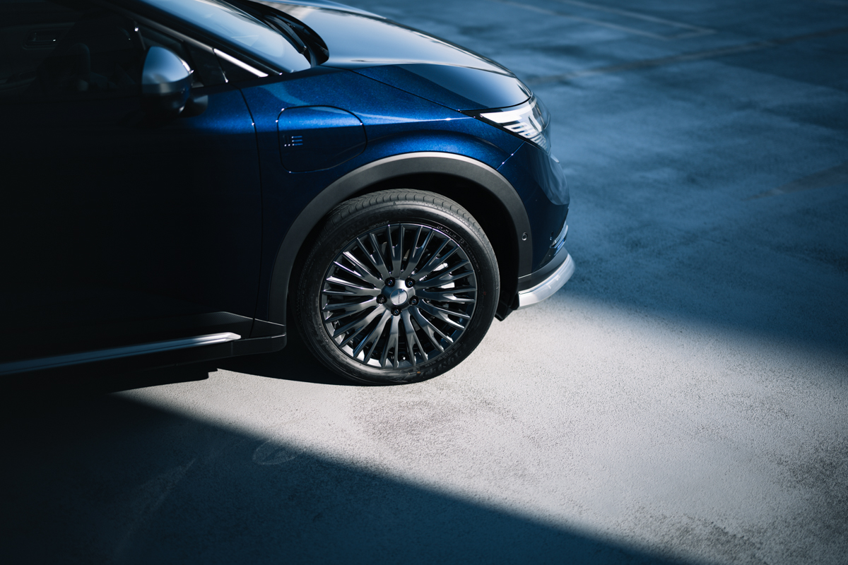 彫りの深い繊細な造形のスポークフォルムをダーク金属調塗装で仕上げた、専用デザインの19インチアルミホイールも目を引きます。