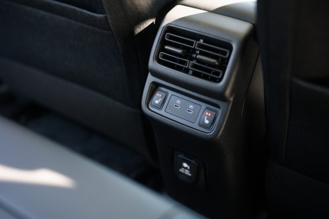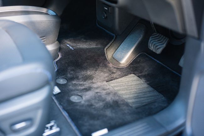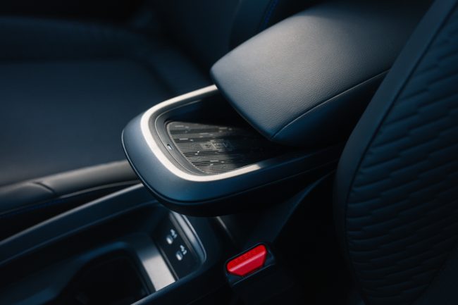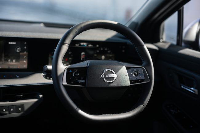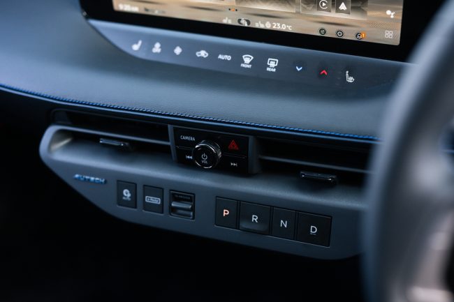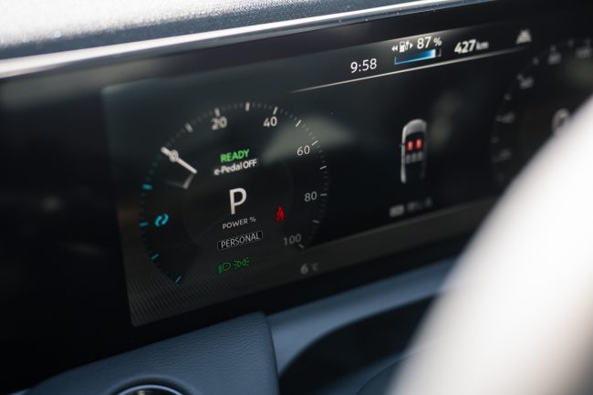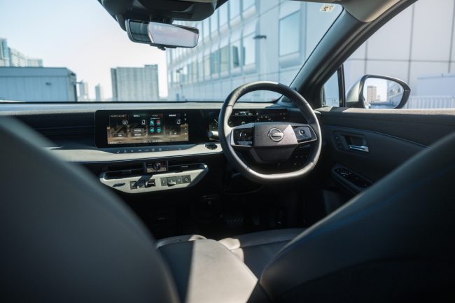新型リーフには、BEV専用の「CMF-EVプラットフォーム」が採用されました。これにより従来は車内にあった空調ユニットがボンネット下のモータールームに配置されたことで、前席の足元が広々と開放的になったのもうれしいポイントです。