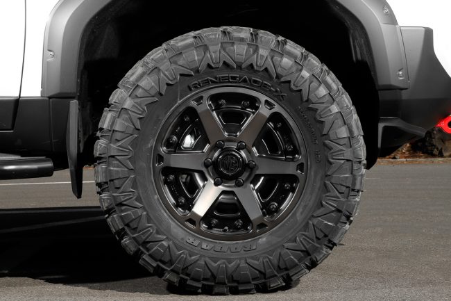 しかし、レネゲイドXはアグレッシブなトレッドパターンを採用するいっぽうで、特殊なトレッドコンパウンドとブロックを支えるブリッジ(タイバー)構造により、偏摩耗を抑制しロングライフ性能の向上にも配慮。またトレッドパターンの最適化によってオンロードでのノイズ低減も図られており、M/Tタイヤとしては快適性も意識した設計とうたわれます。