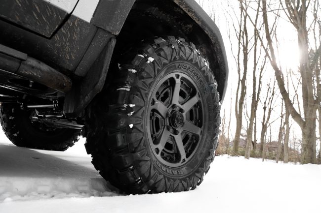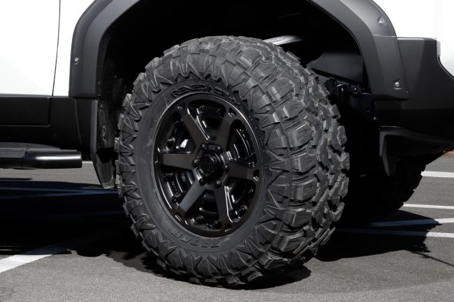 そうなると、オンロード用だけでなく、オフロード走行に対応したタイヤも選択肢に加わります。オフロードタイヤは「H/T(ハイウェイテレーン)」「A/T(オールテレーン)」「R/T(ラギッドテレーン)」「M/T(マッドテレーン)」など、対応する路面状況に応じて細分化されています。