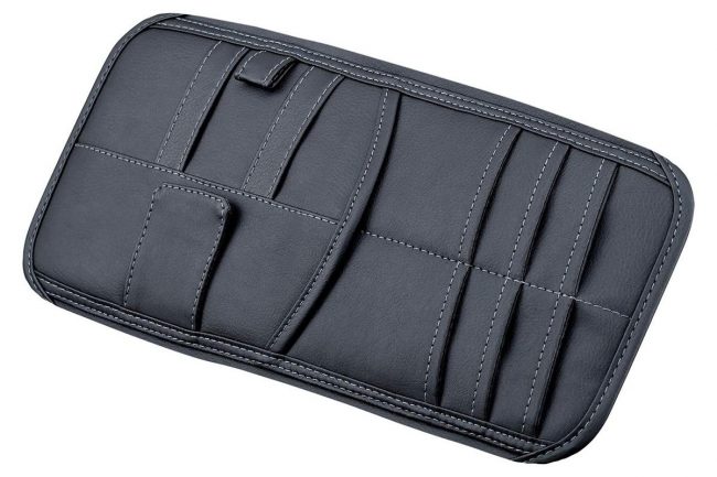 車内の小物を“スッキリ収納”! セイワの本革調サンバイザーポケット