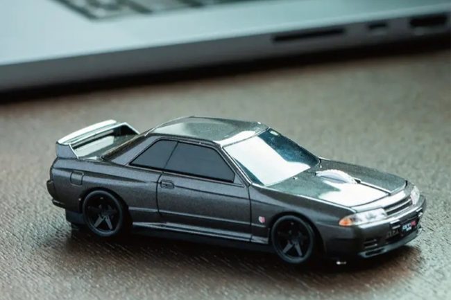 日産「スカイライン」をデスクに! ライトも点灯 “GT-R” 型無線マウス