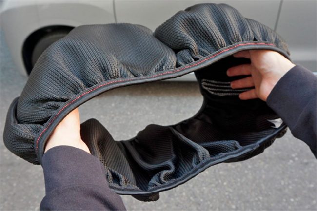 一方でモビルシュシュは、軽くて柔らかい布製という特性から、誰でも手袋をして簡単にタイヤにかぶせられる手軽さが最大の魅力です。