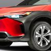 トヨタが新型SUV「bZ4X」鮮烈レッドのド派手仕様を初公開! 斬新顔強調!? 巨大レトロトヨタ車「タコジラ」もLAに登場
